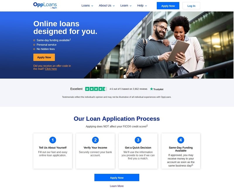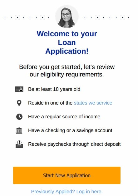 • Requisitos de residencia: OppLoans no funciona en los 50 estados, por lo que es posible que no sea elegible para solicitar sus productos. Además, algunos estados tienen restricciones que hacen que algunos productos no estén disponibles para sus residentes.